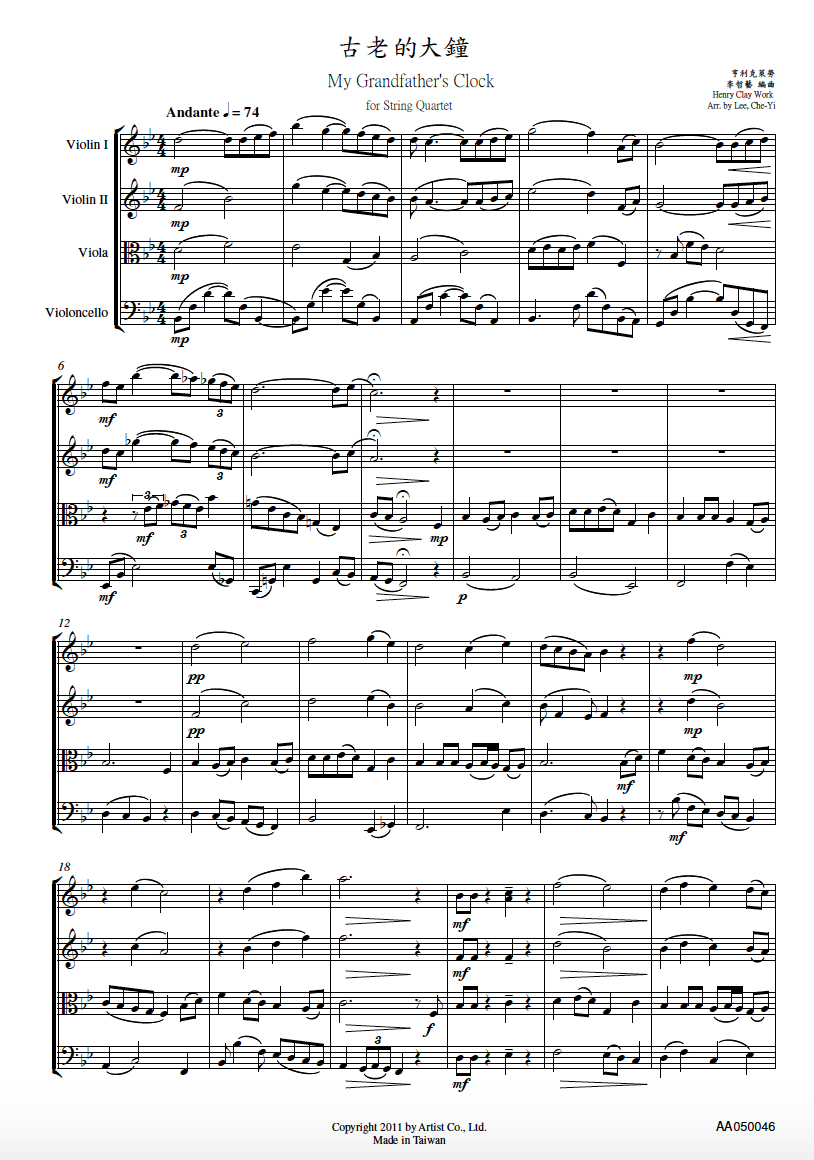 古老的大鐘 (絃樂四重奏)